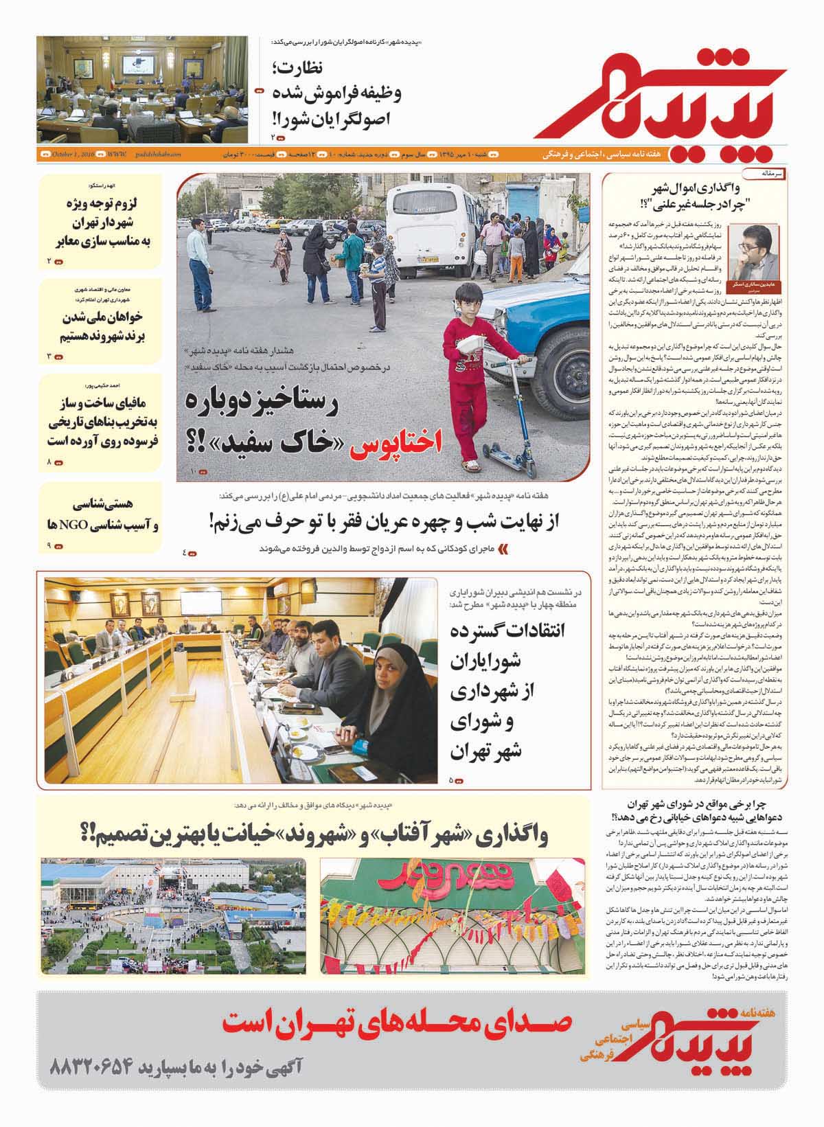 هفته نامه طهران شهر - هفته نامه سیاسی ، اجتماعی و فرهنگی شماره 10 صفحه 1