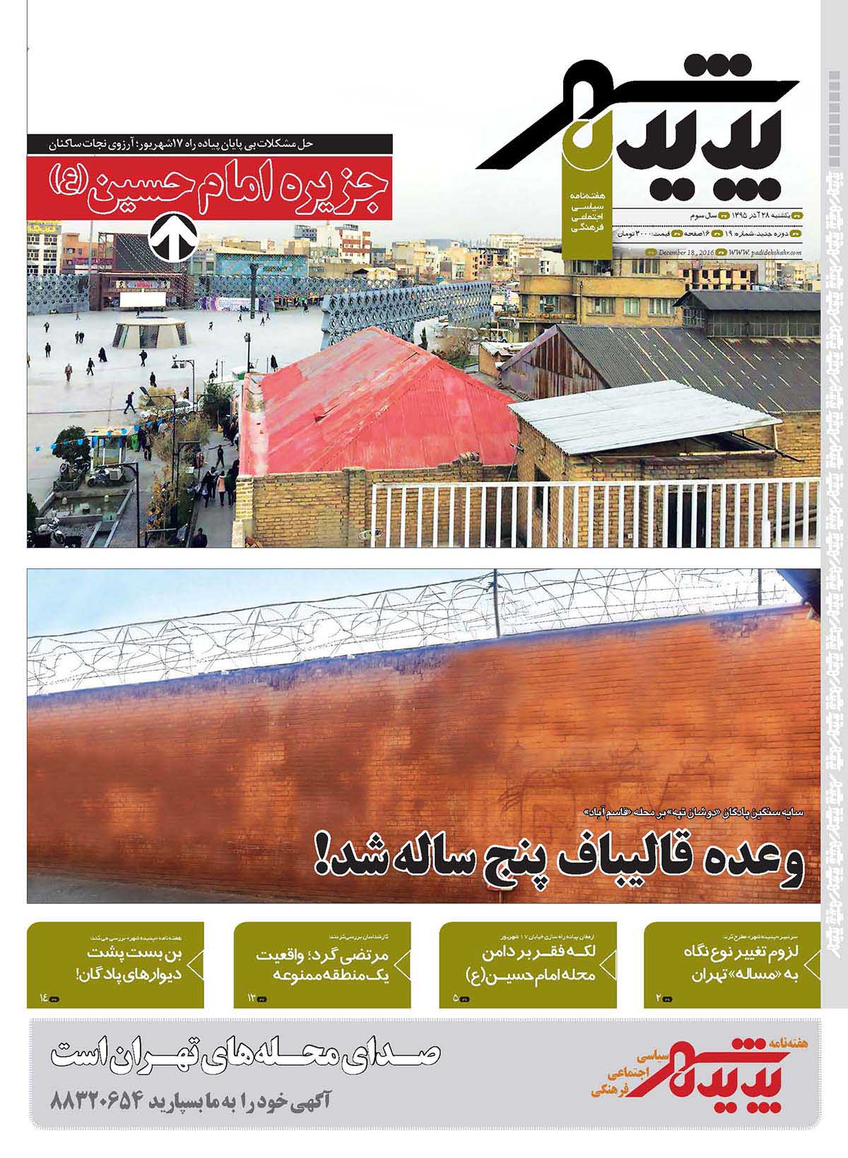 شماره 19 هفته نامه طهران شهر منتشر شد. برای دانلود هفته نامه به صورت pdf اینجا کلیک کنید.