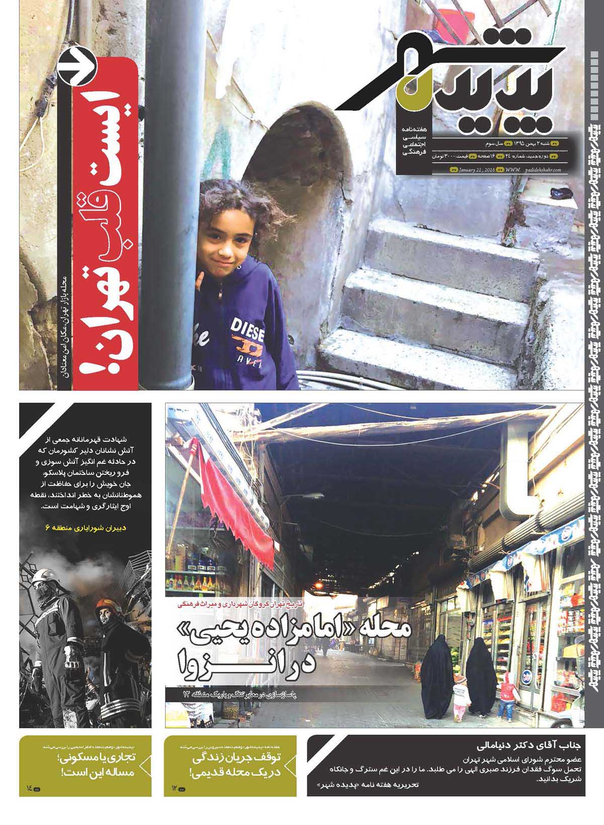 شماره 24 هفته نامه طهران شهر منتشر شد. برای دانلود هفته نامه به صورت pdf اینجا کلیک کنید.