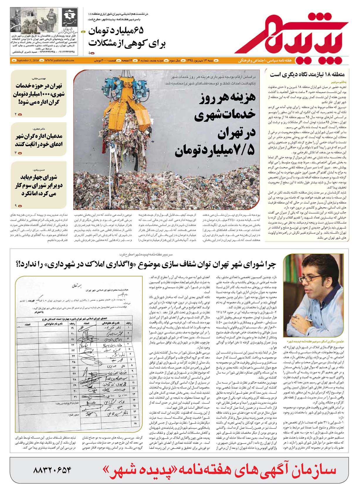 شماره 6 هفته نامه طهران شهر منتشر شد. برای دانلود هفته نامه به صورت pdf اینجا کلیک کنید.