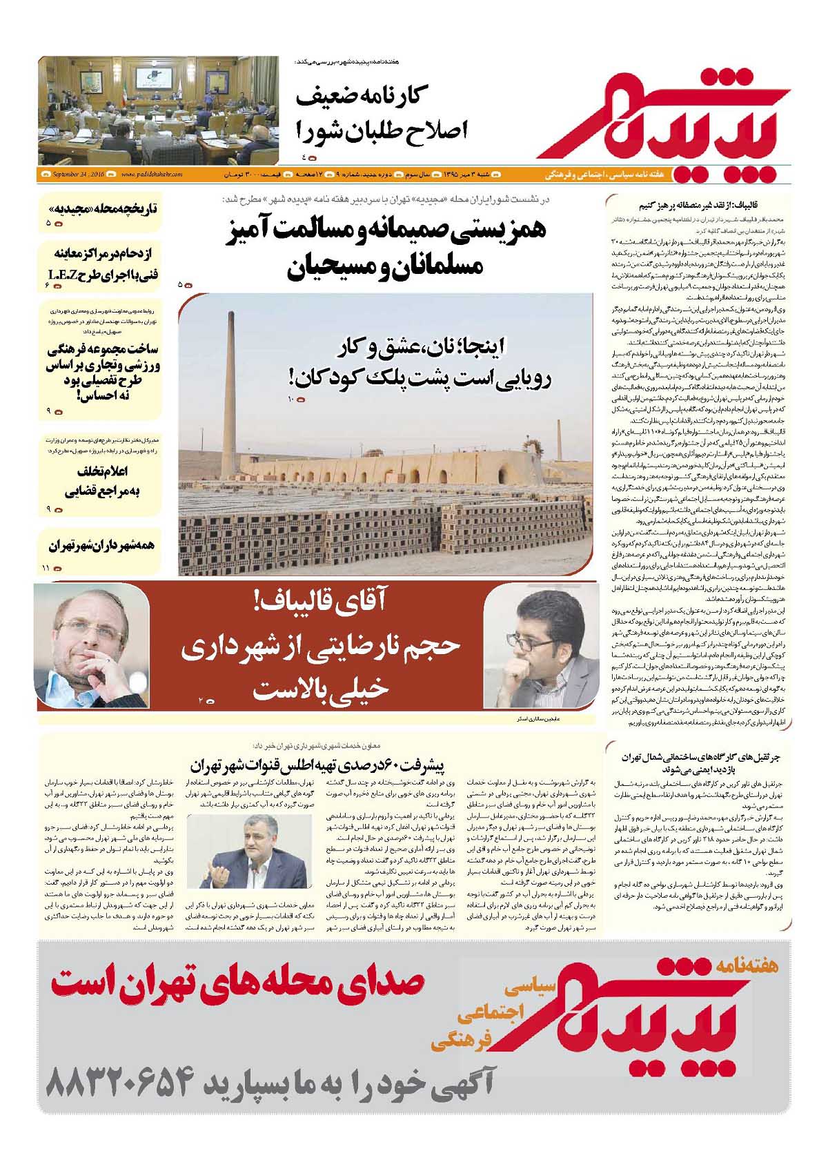 شماره 9 هفته نامه طهران شهر منتشر شد. برای دانلود هفته نامه به صورت pdf اینجا کلیک کنید.