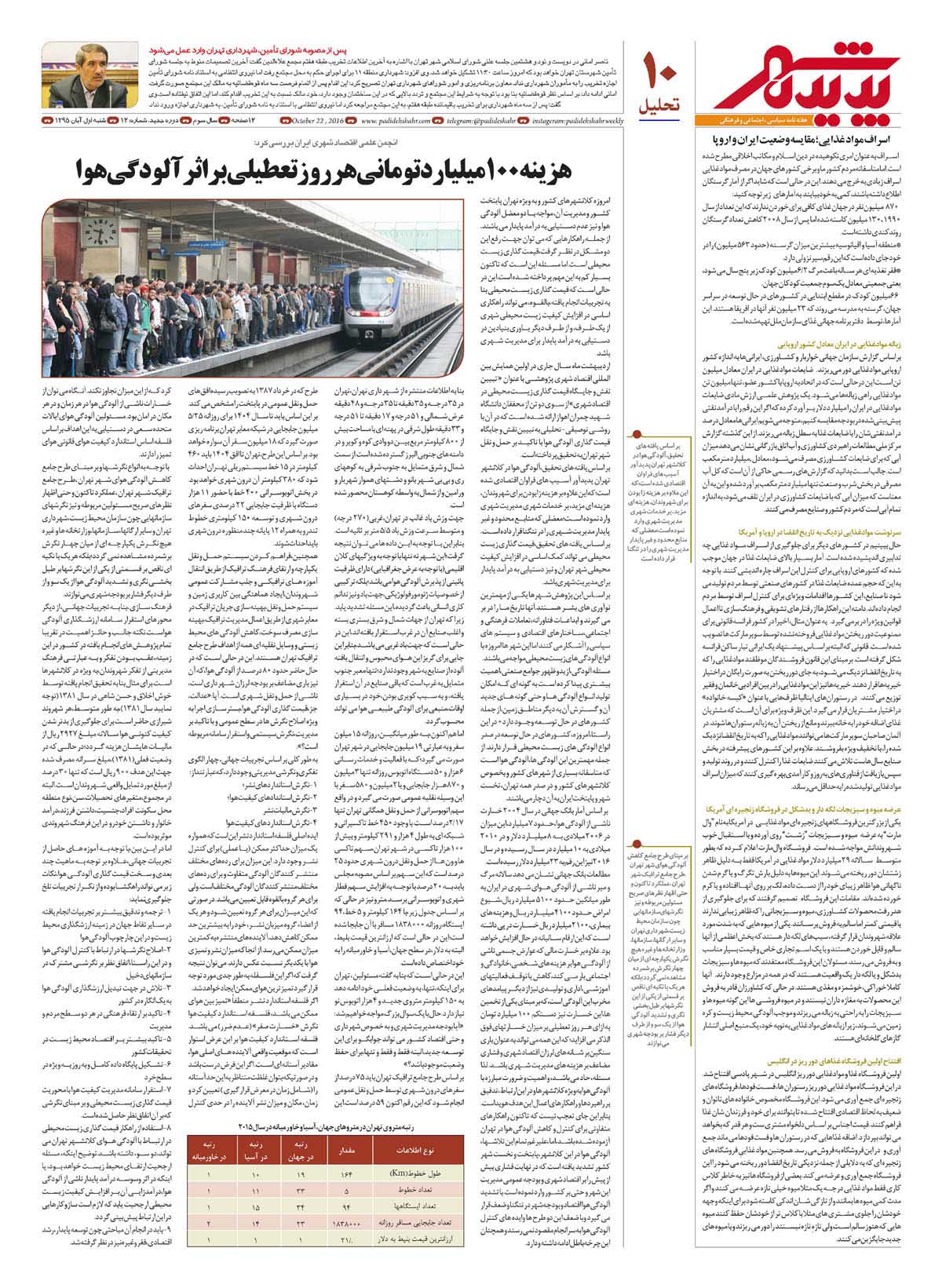 شماره 12 هفته نامه طهران شهر منتشر شد. برای دانلود هفته نامه به صورت pdf اینجا کلیک کنید.