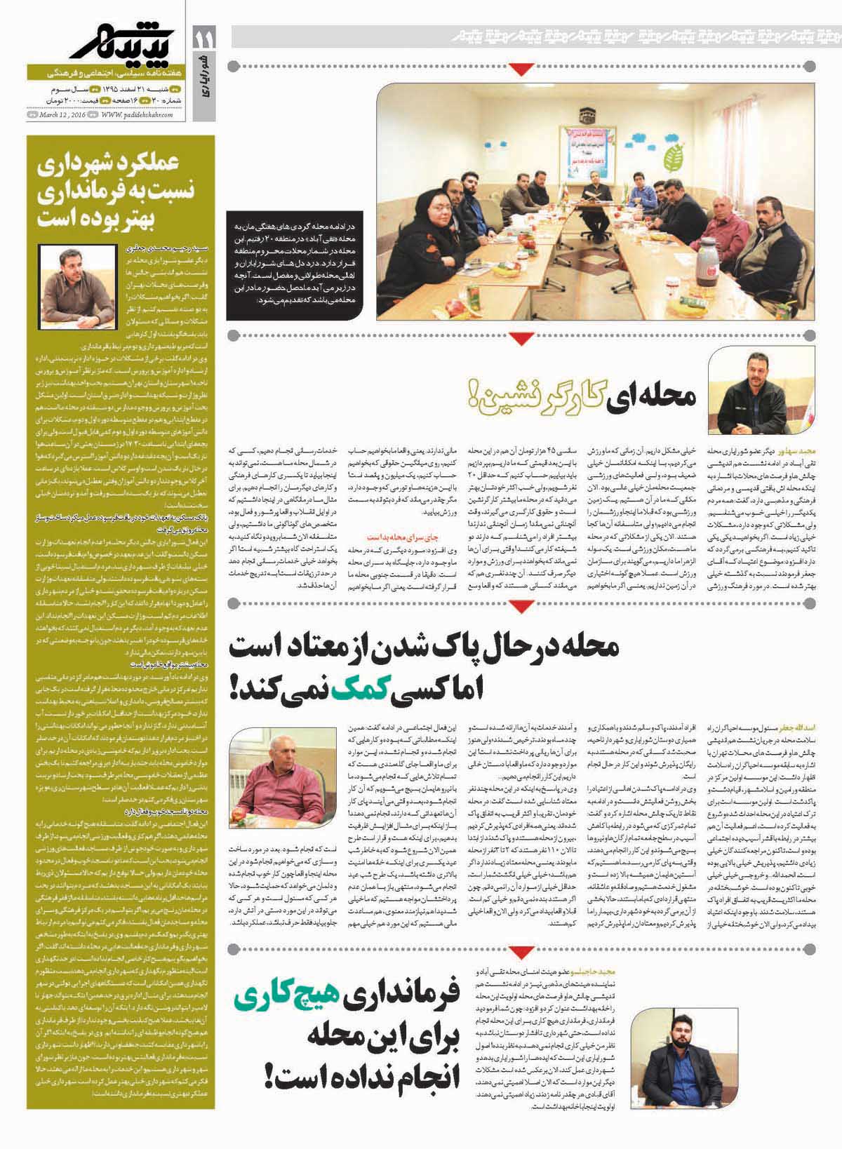 هفته نامه طهران شهر - هفته نامه سیاسی ، اجتماعی و فرهنگی شماره 30 صفحه 11