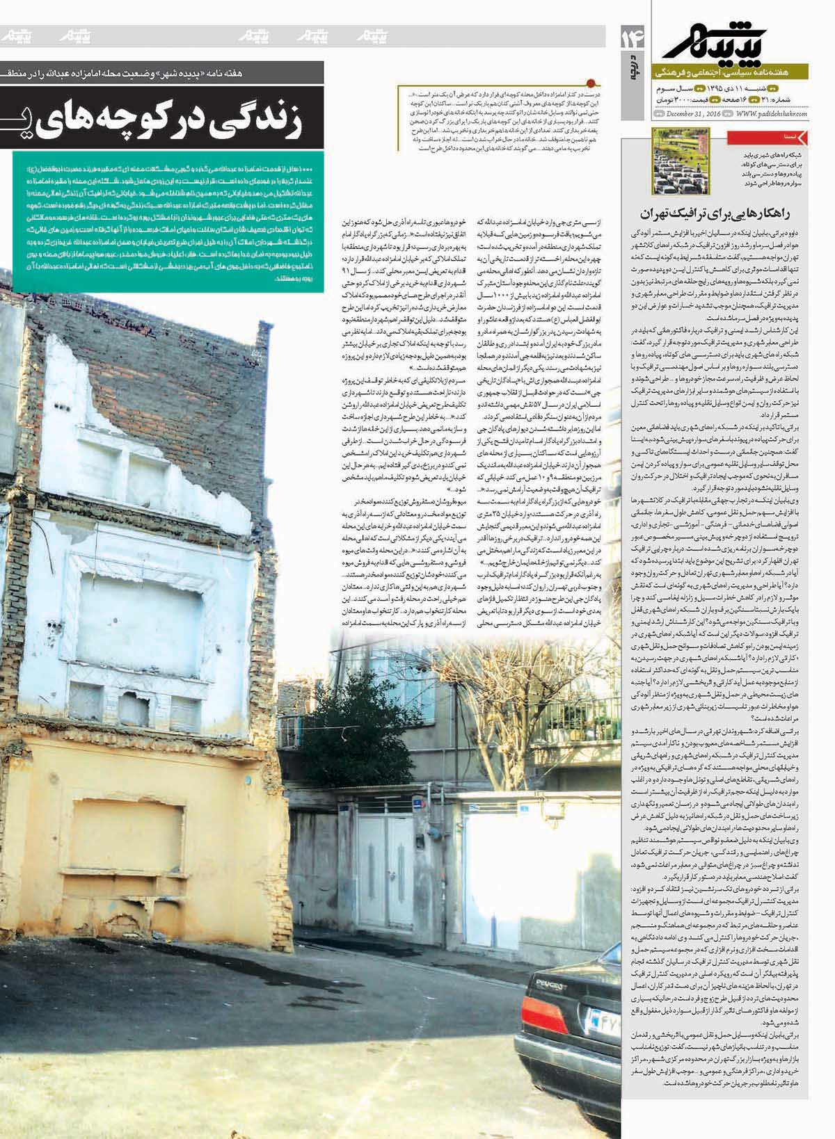 شماره 21 هفته نامه طهران شهر منتشر شد. برای دانلود هفته نامه به صورت pdf اینجا کلیک کنید.