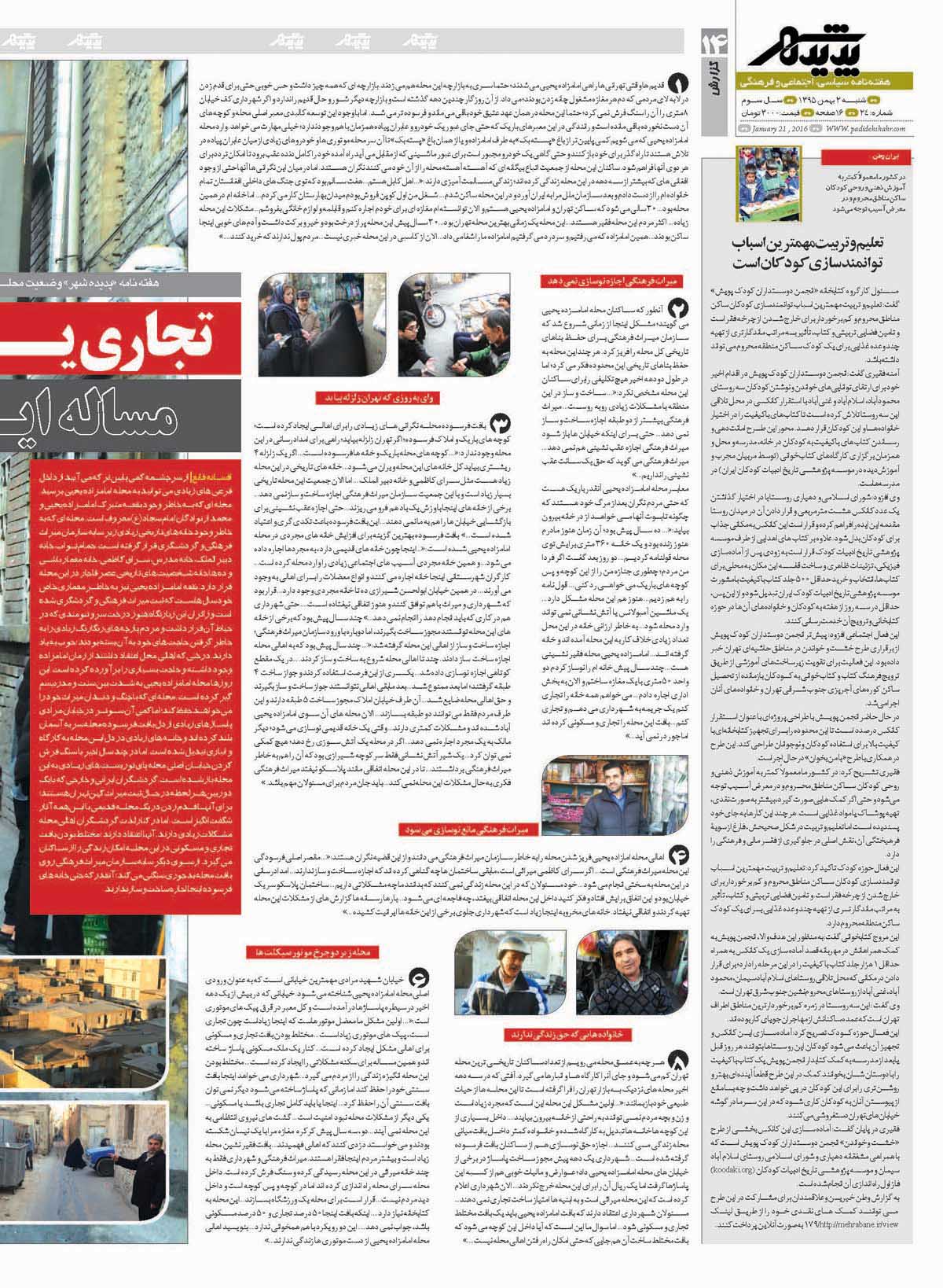شماره 24 هفته نامه طهران شهر منتشر شد. برای دانلود هفته نامه به صورت pdf اینجا کلیک کنید.