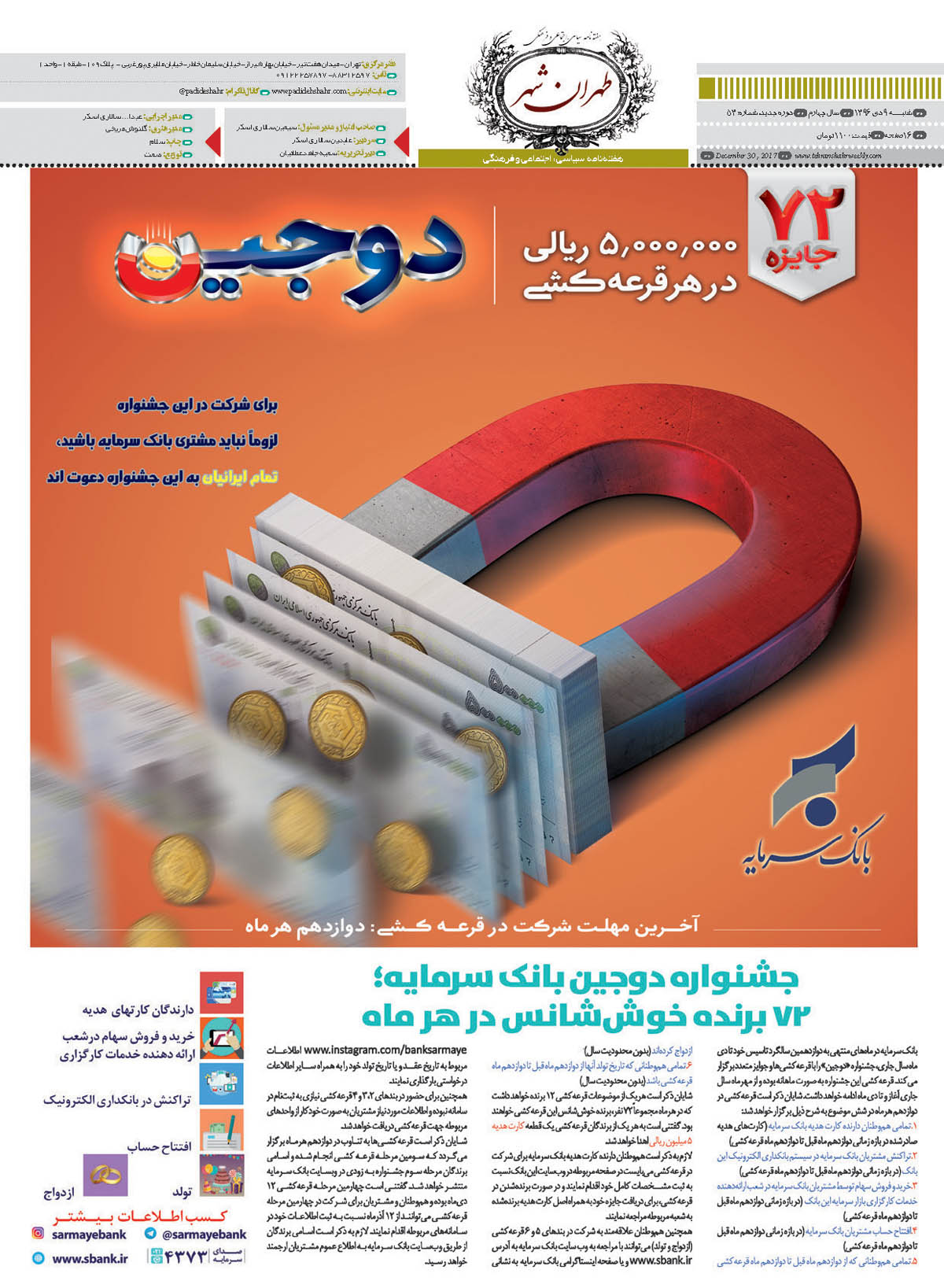 شماره 53 هفته نامه طهران شهر منتشر شد. برای دانلود هفته نامه به صورت pdf اینجا کلیک کنید.