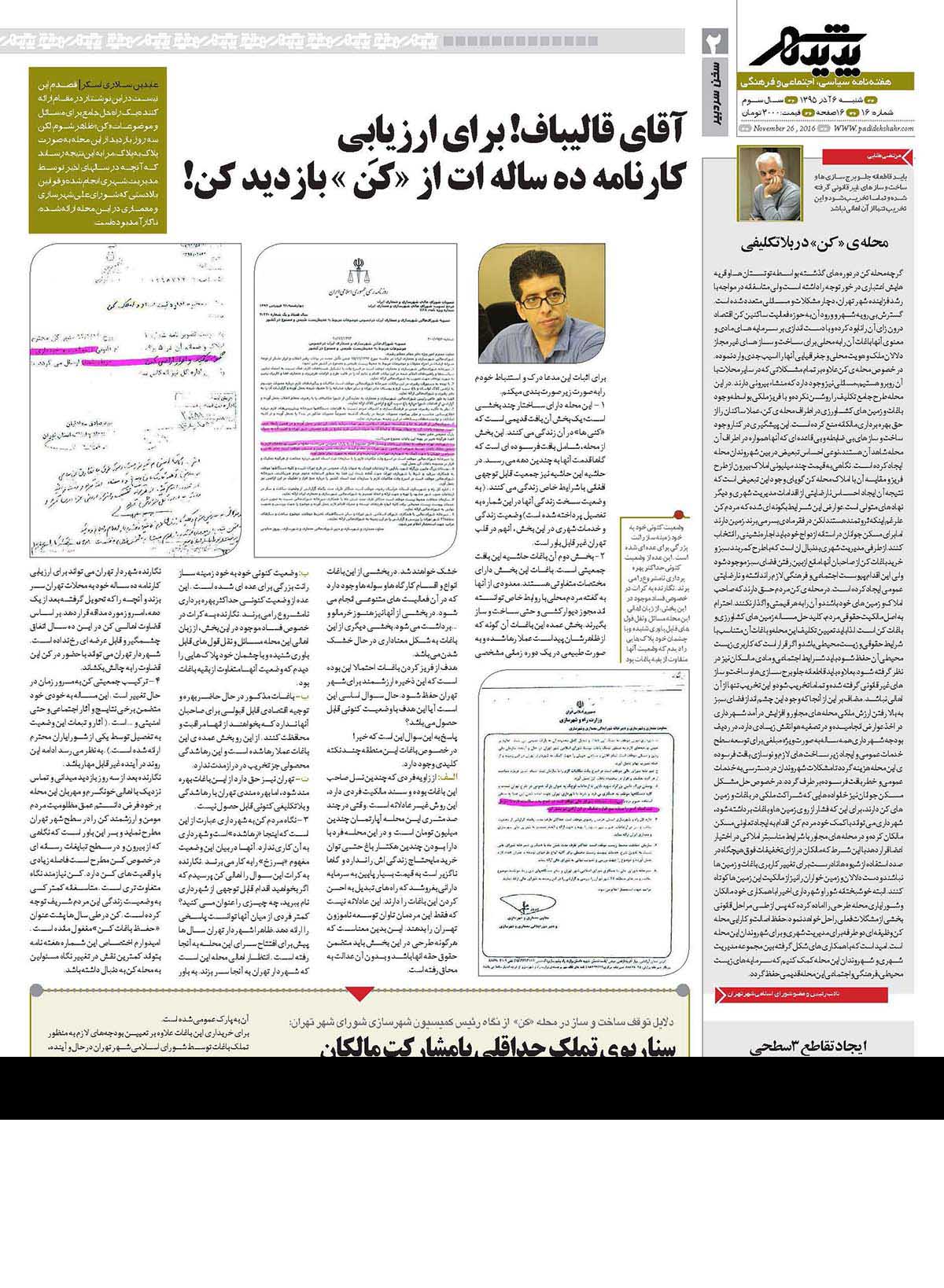 شماره 16 هفته نامه طهران شهر منتشر شد. برای دانلود هفته نامه به صورت pdf اینجا کلیک کنید.