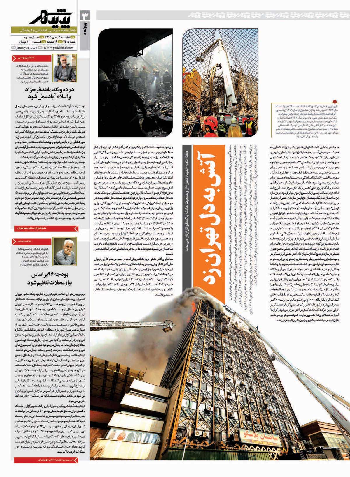 شماره 24 هفته نامه طهران شهر منتشر شد. برای دانلود هفته نامه به صورت pdf اینجا کلیک کنید.