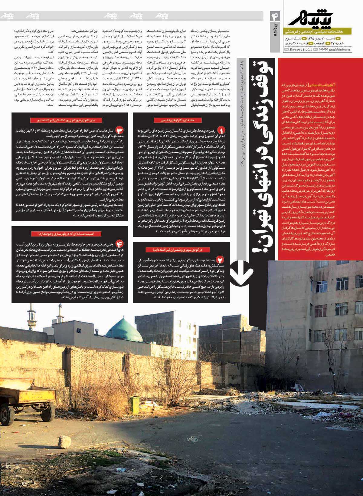 شماره 27 هفته نامه طهران شهر منتشر شد. برای دانلود هفته نامه به صورت pdf اینجا کلیک کنید.