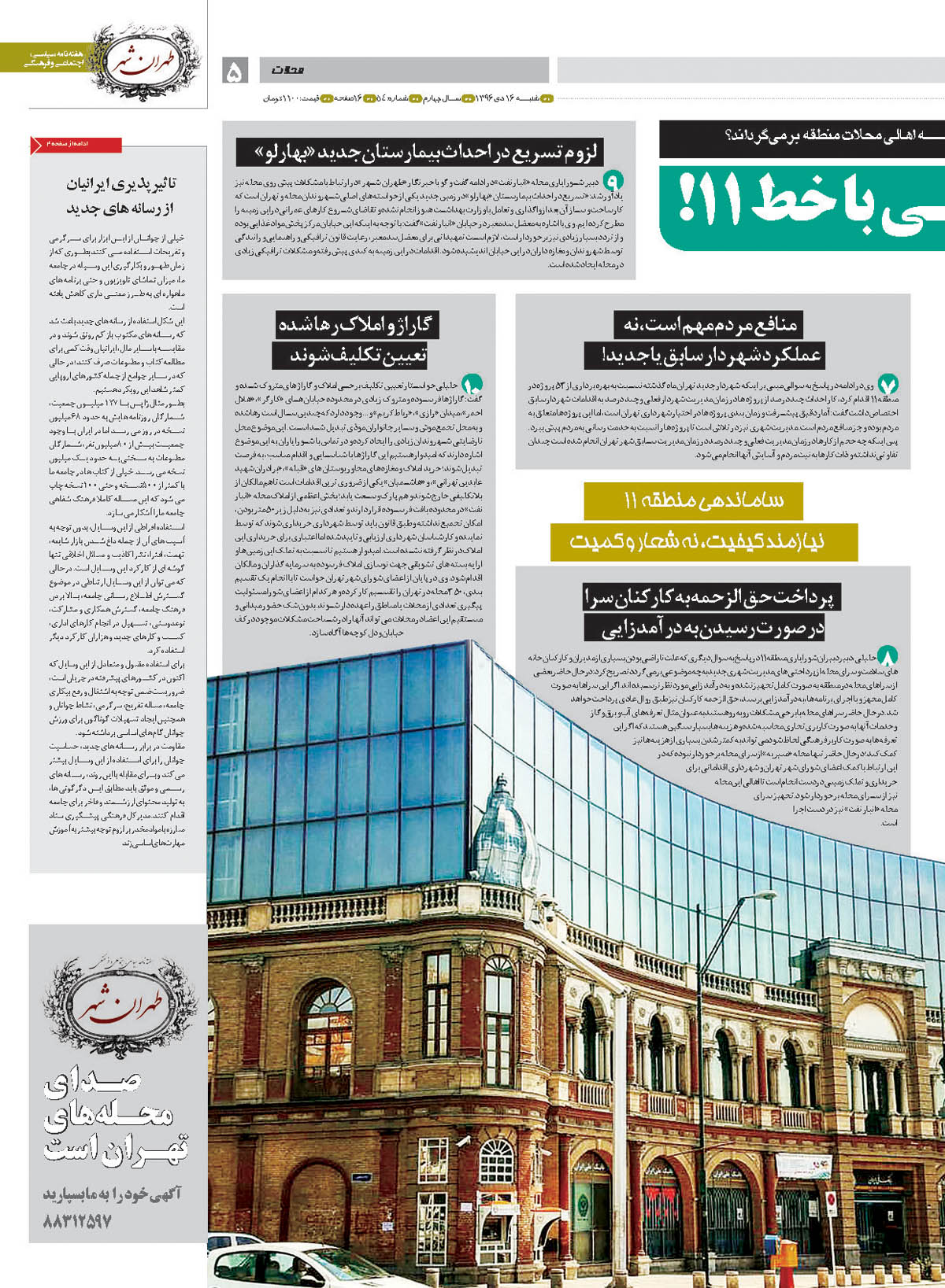 هفته نامه طهران شهر - هفته نامه سیاسی ، اجتماعی و فرهنگی شماره 54 صفحه 5