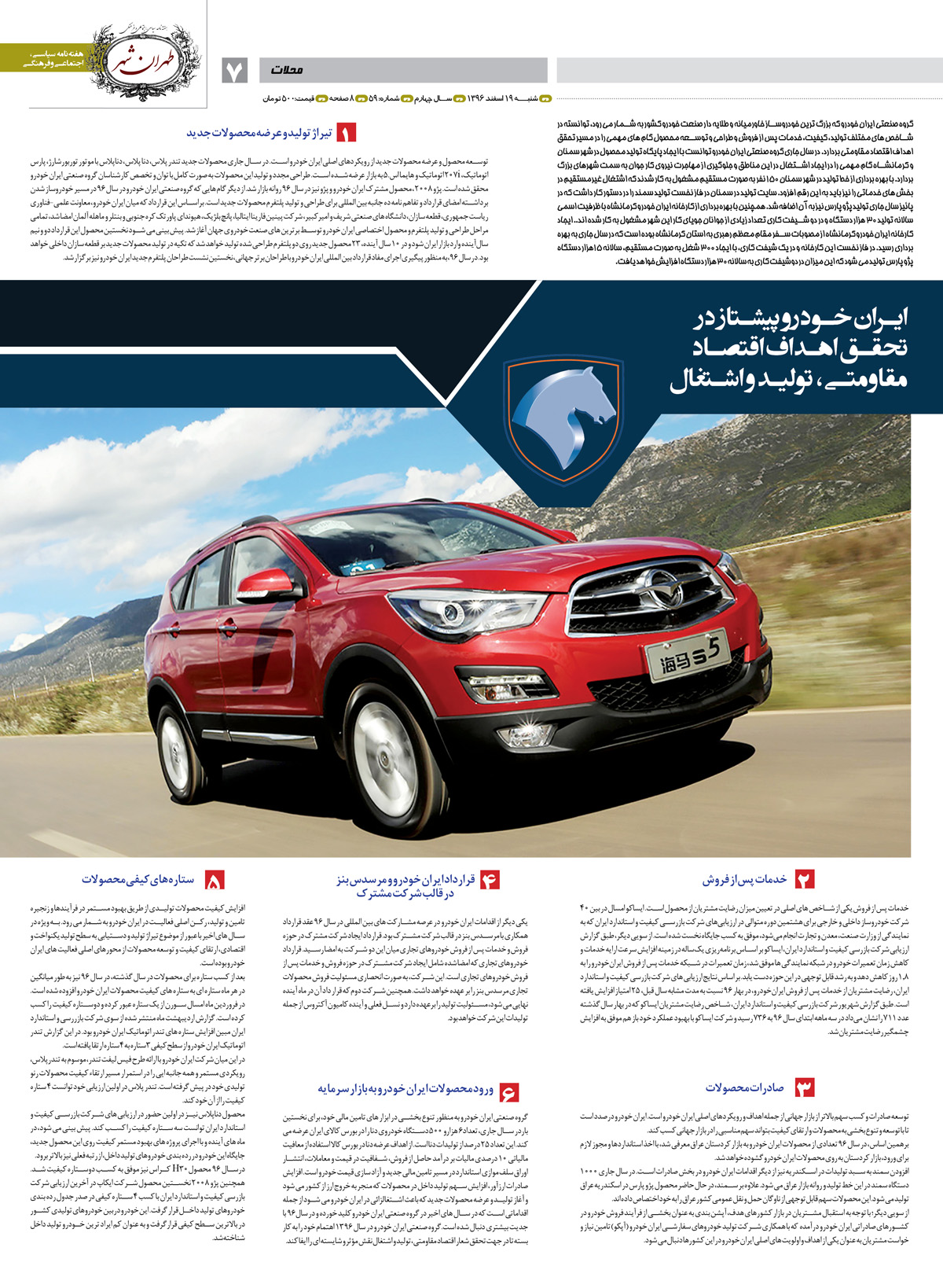 هفته نامه طهران شهر - هفته نامه سیاسی ، اجتماعی و فرهنگی شماره 59 صفحه 7