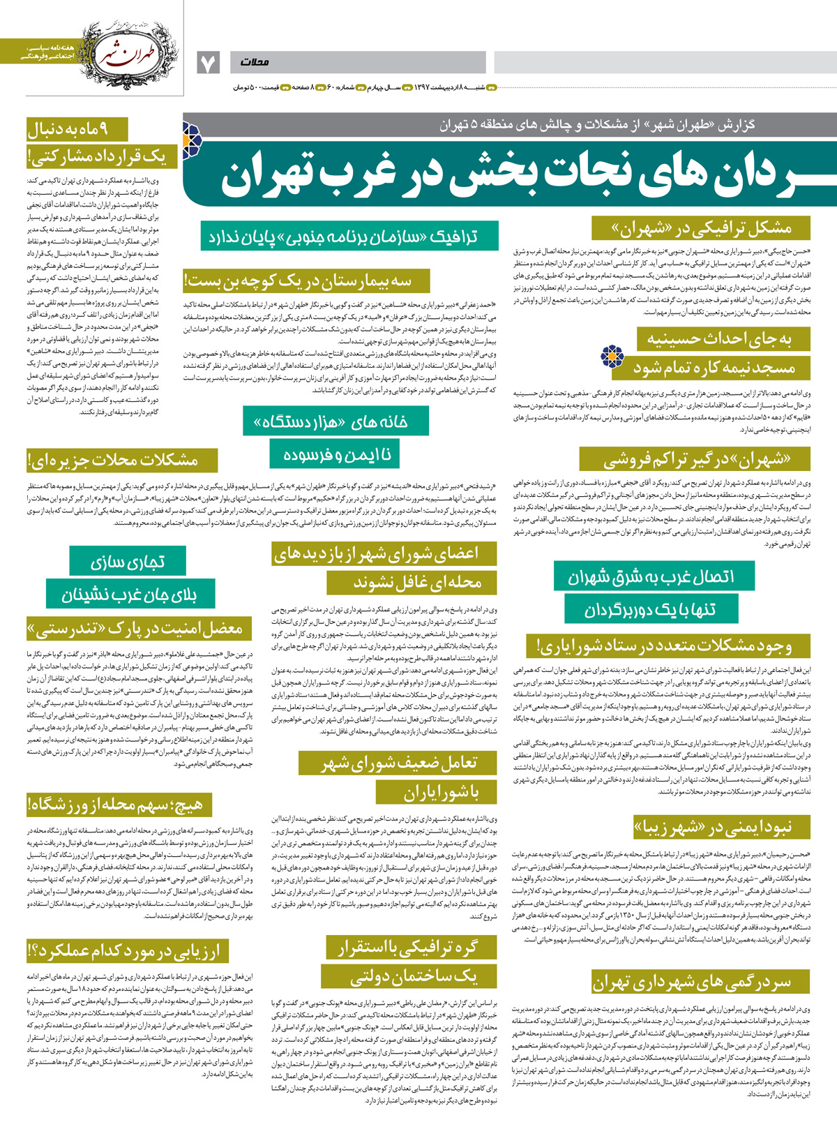 هفته نامه طهران شهر - هفته نامه سیاسی ، اجتماعی و فرهنگی شماره 60 صفحه 7