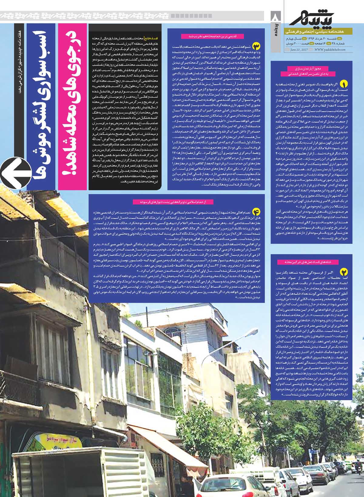 شماره 38 هفته نامه طهران شهر منتشر شد. برای دانلود هفته نامه به صورت pdf اینجا کلیک کنید.