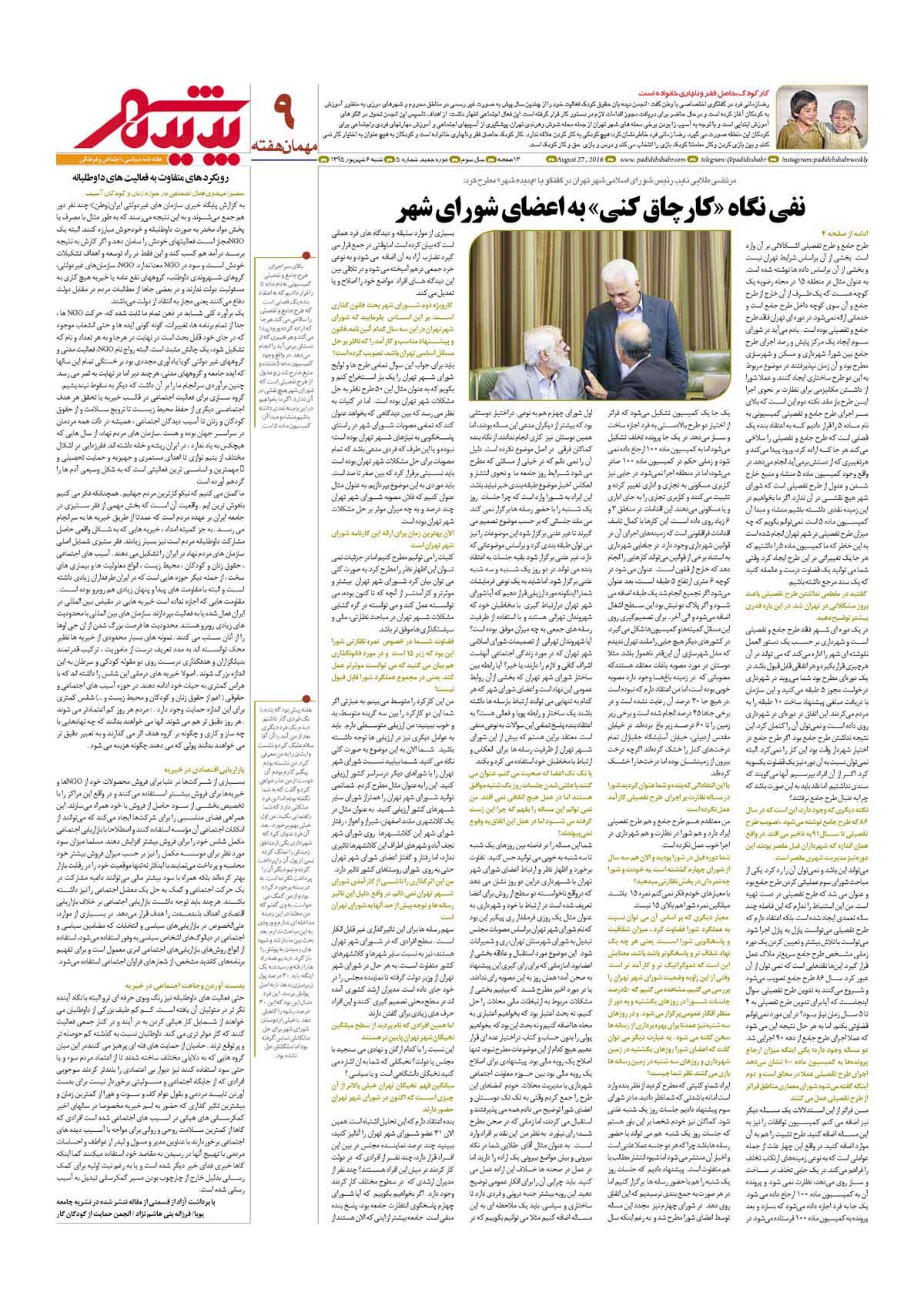 هفته نامه طهران شهر - هفته نامه سیاسی ، اجتماعی و فرهنگی شماره 5 صفحه 9